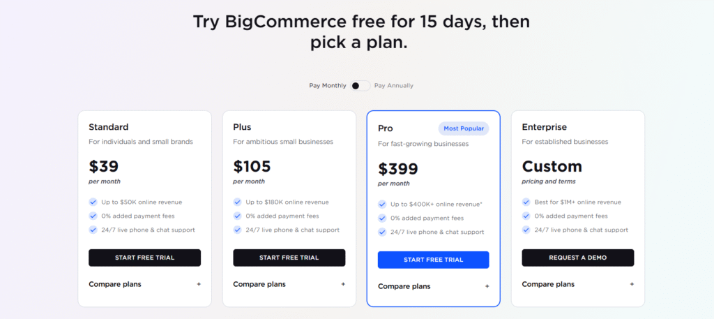 BigCommerce stands out as a scalable SaaS built for growth, with native multi-storefront, strong APIs for headless builds, and broad payment gateway coverage that suits India-focused D2C operations when benchmarking shopify alternatives india. It supports composable front ends, robust B2B features, and zero platform transaction fees across tiers, which helps total cost of ownership as volume increases.